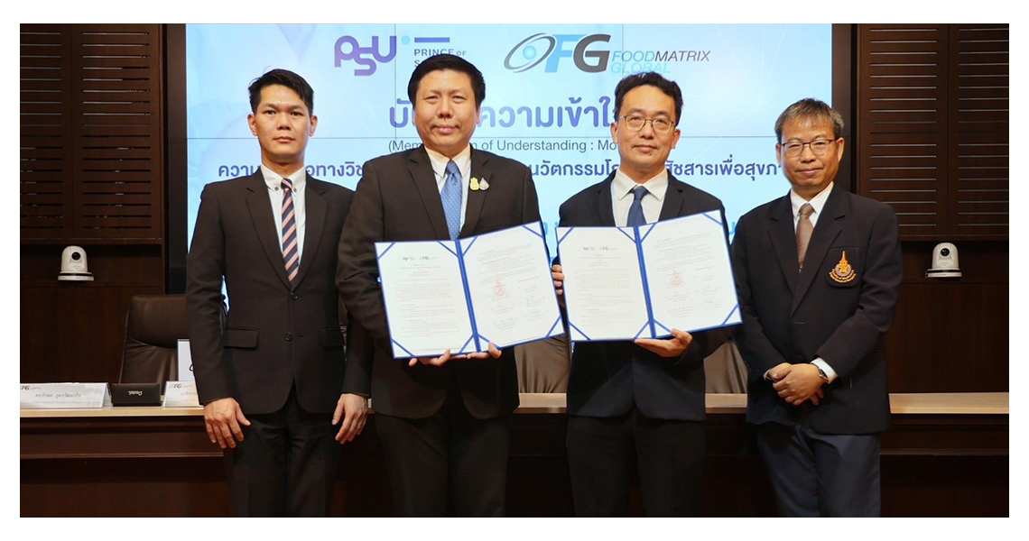 The signing of the MOU with the Faculty of Medicine, Prince of Songkla University, led by Assoc. Prof. Dr. Sunthorn Wongsiri, Vice President for Research and Innovation, Prince of Songkla University, marks a significant collaboration. Prof. Dr. Surasak Sangkhathat Na Ayutthaya, Deputy Director of the Research and Development Office, and Head of the Biomedical Department's BioActivity Team, along with Assoc. Prof. Dr. Potchanapond Graidist, Assoc. Prof. Dr. Varomyalin Tiomanee, Asst. Prof. Dr. Kanthida Chanjit, and Asst. Prof. Dr. Krit Jarupanich, has joined in signing the MOU. This cooperation aims to develop nutraceuticals for medical purposes, supporting Thai entrepreneurs and enhancing Thailand's health industry. It also aims to bolster exports on the global stage.